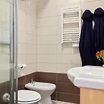 Rummen har TV, mathörna och sitthörna samt ett privat badrum med hårtork och handdukar. De är inredda med kaklat golv. Badrummen har dusch och bidé.